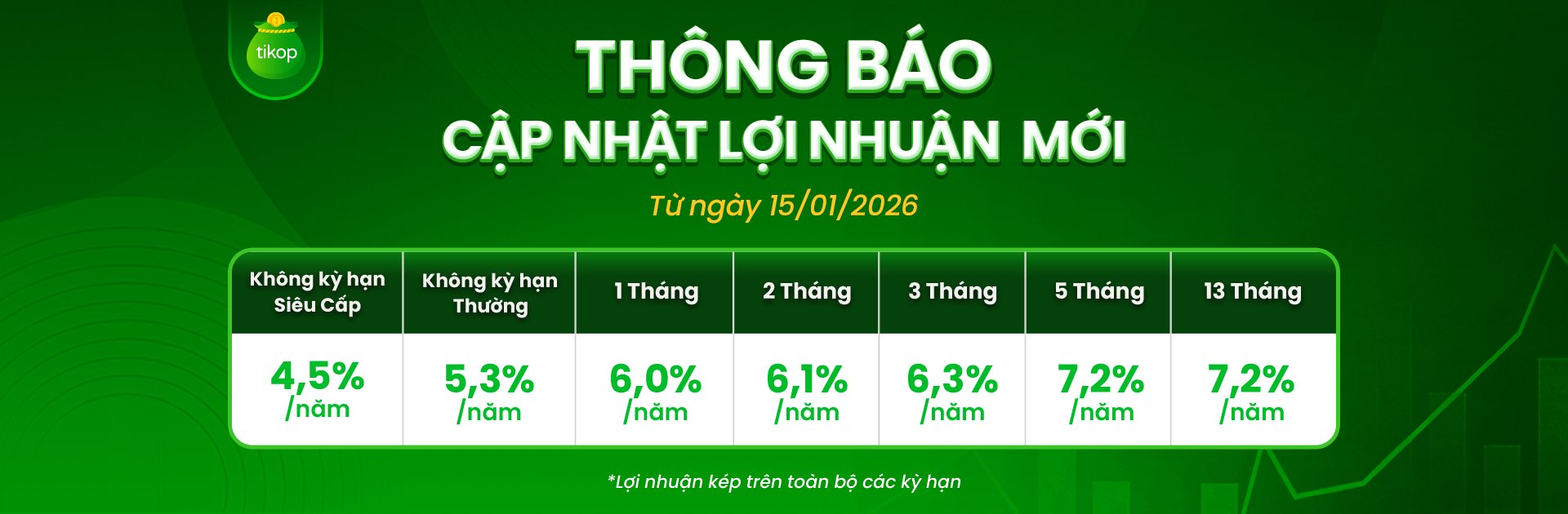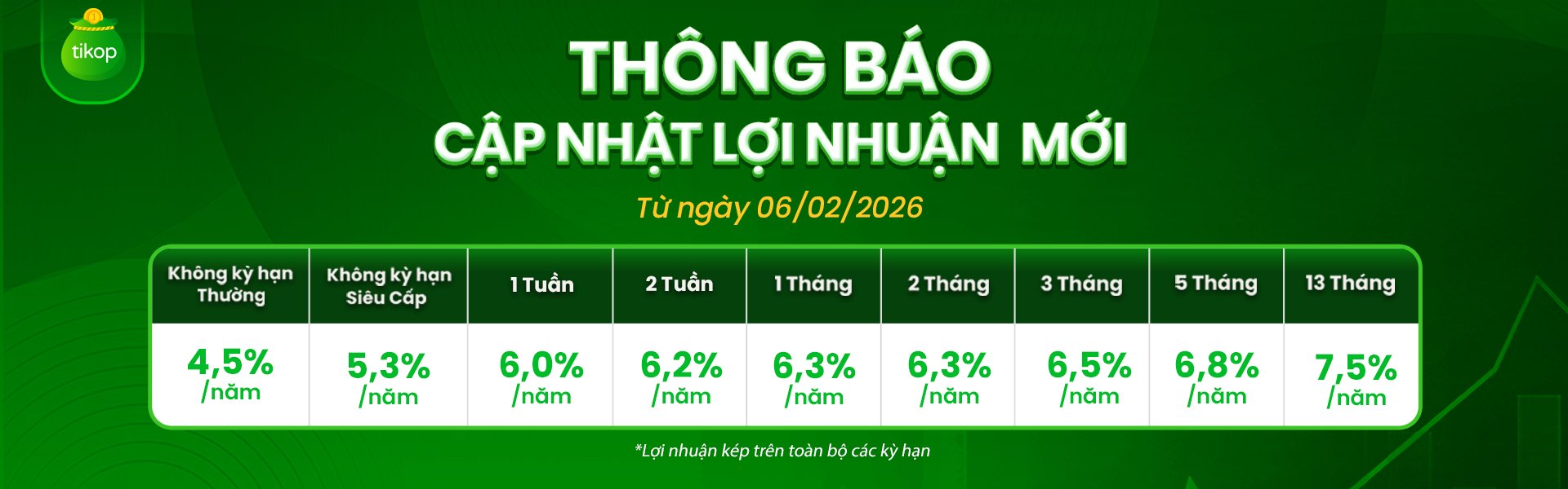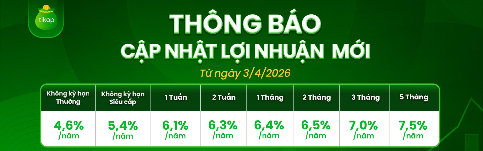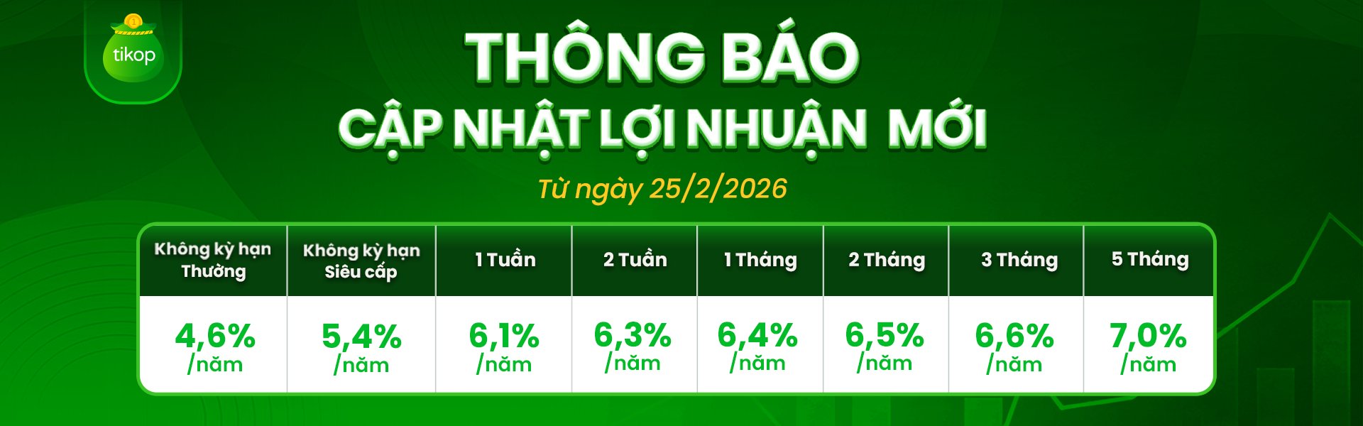 Tikop MIỄN 100% PHÍ NỀN TẢNG sản phẩm Tích luỹ từ ngày 1/11/2025 Xem thêm ...Các câu hỏi khác liên quan đến rút tích lũy?