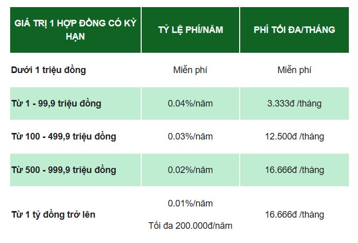 Mức phí cụ thể Quý khách hàng tham khảo biểu phí sau: